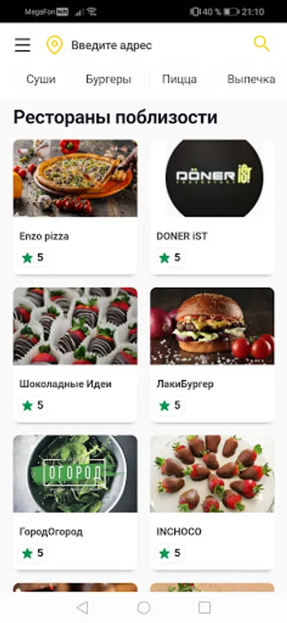 Orders are accepted from 12:00 to 23:00. Delivery of production within 40 minutes.