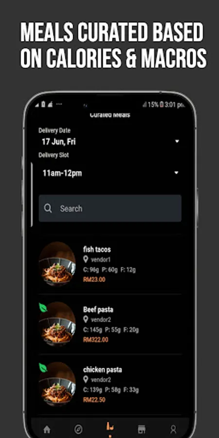 We then provide ready-made meal recommendations from our network of vendors, which fit your calories/macro requirements.