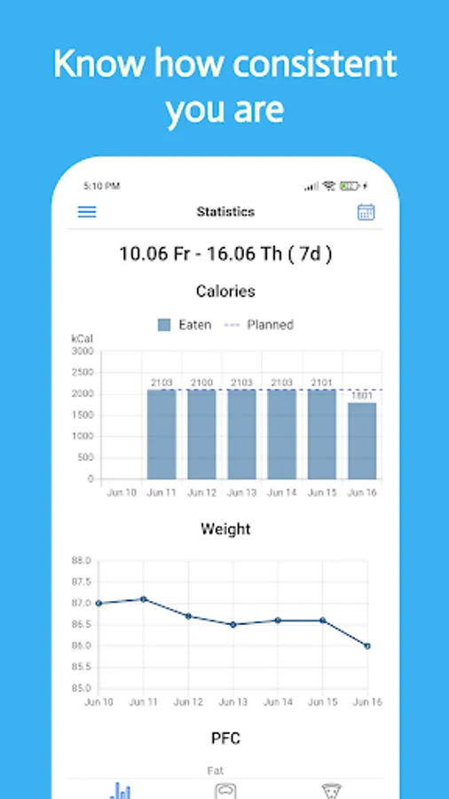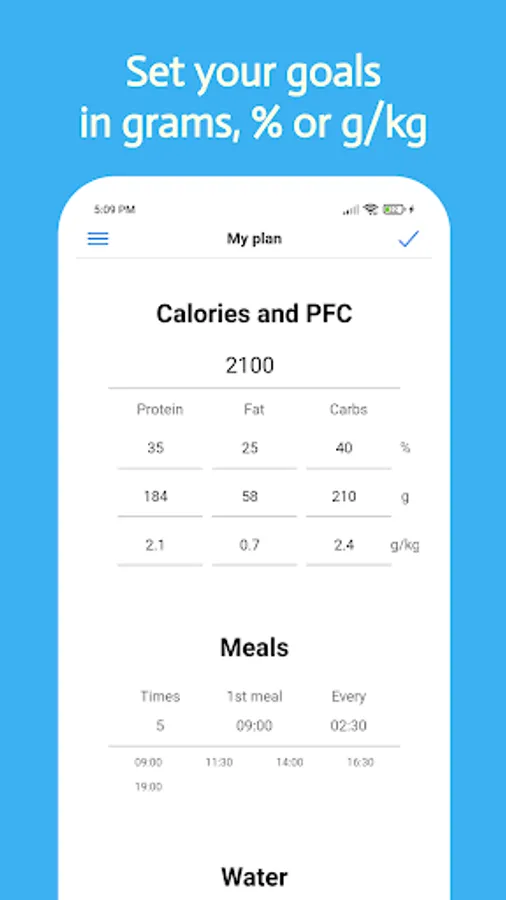 Track your progress toward nutrition, macros, water, fitness, and weight loss goals. EatFit is more than just a calorie or food tracker and health app. Besides counting calories, you can plan meals for the next day or a week. You will stay as close as possible to your calories, macros, and nutrition. Want to know how many grams of protein, fat, and carbohydrates per kg of weight you eat (g/kg)? The app can calculate that. Grams per lb (g/lb)? No problem.