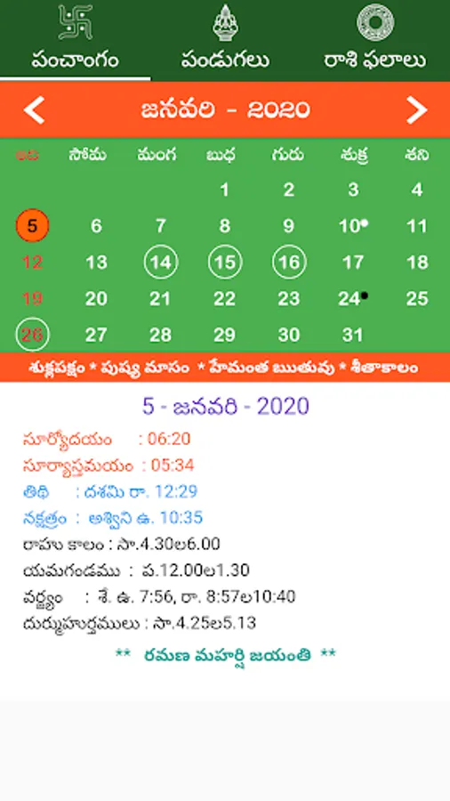 Telugu Calendar 2020 shows you panchangam,festivals,muhurtams.