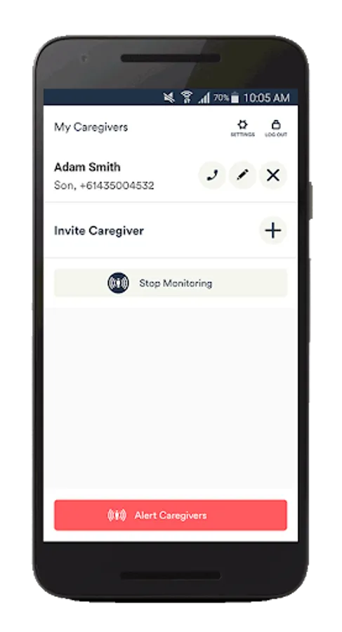 2. Immediate Alert: The app then automatically sends notifications with the wearer’s GPS location to the nominated caregivers without the need for manual intervention based on workflows of escalation.