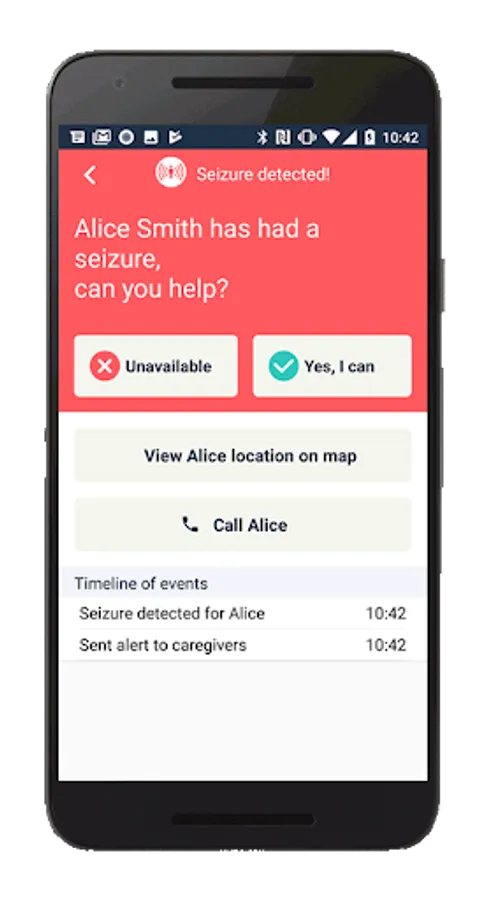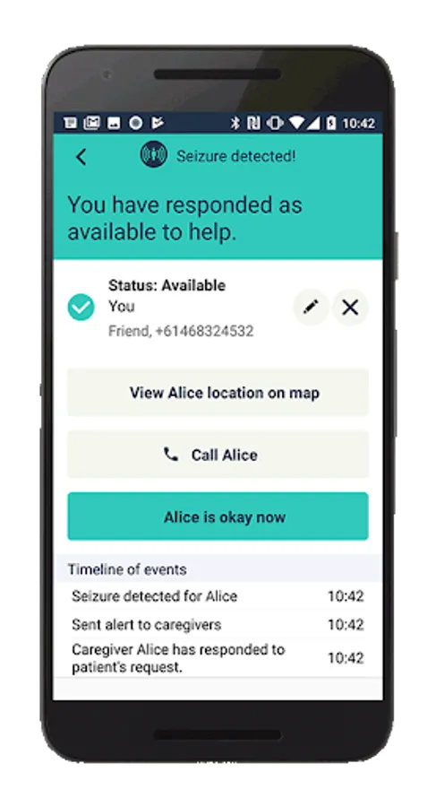 This ground-breaking app uses proprietary and innovative algorithms, which interprets data automatically captured by sensor technologies on the smartwatch, to determine if the wearer has a seizure.