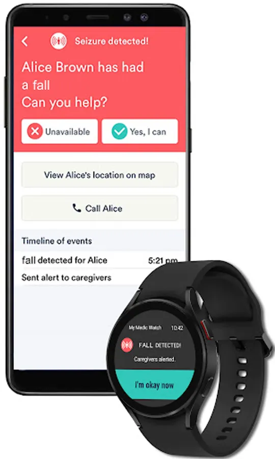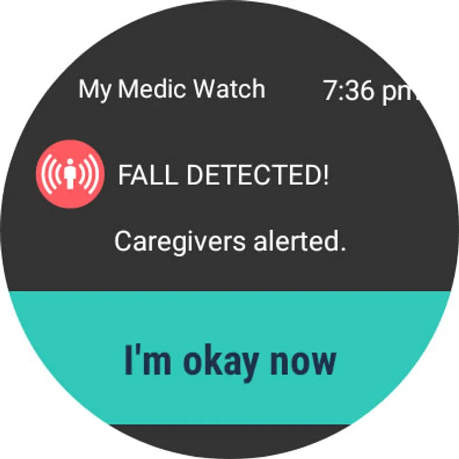 With the My Medic Watch app subscriptions, the wearer has his/her smartwatch app running and benefits from being monitored all the time with automatic fall detection. These app subscriptions include automatic medical event app notifications to the patient and to the caregivers.