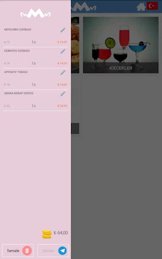 MyMenu mobil app , a digital menu that can be used in all sectors / catalog application. Menu display , product details for each product descriptions and slider to show , in order to create a basket of selected products is an application that has such characteristics .