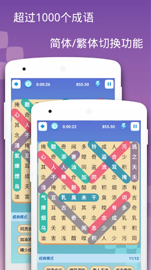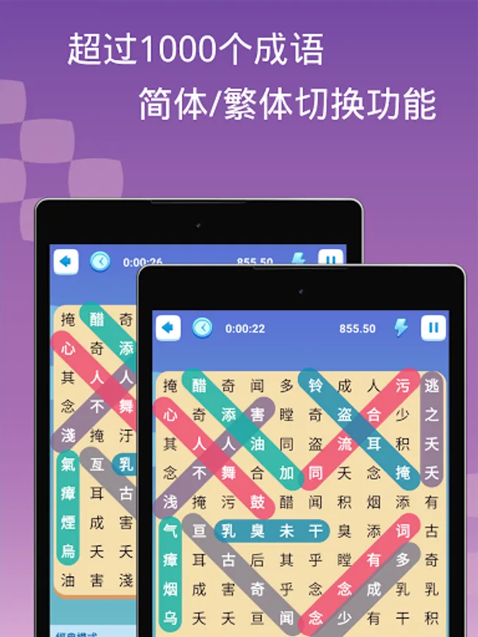 Idioms Riddle Palace is a mobile game for finding idioms. When you identify hidden idioms and then swipe up, down, left, right or diagonally to mark them, you will enjoy an interesting challenge. This is a fun way to hone your idiom skills. More than 1000 idiom words are combined in the game. Learn idioms through games and make boring learning interesting. It is a good helper for learning idioms. To become a master of idioms is just around the corner.