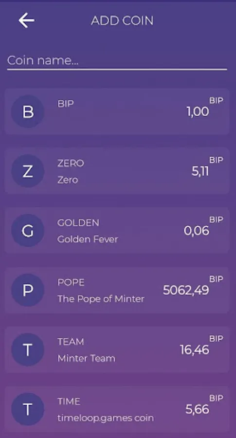 In a few clicks, add a coin and follow its rate on the main page of the app.