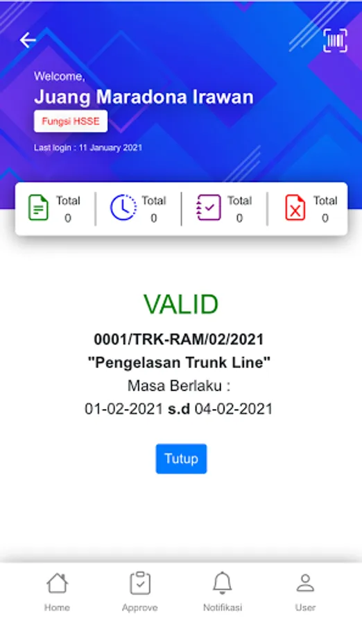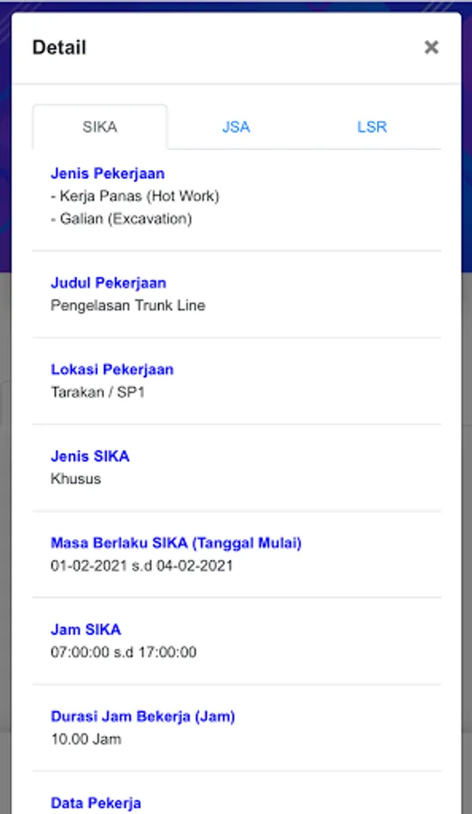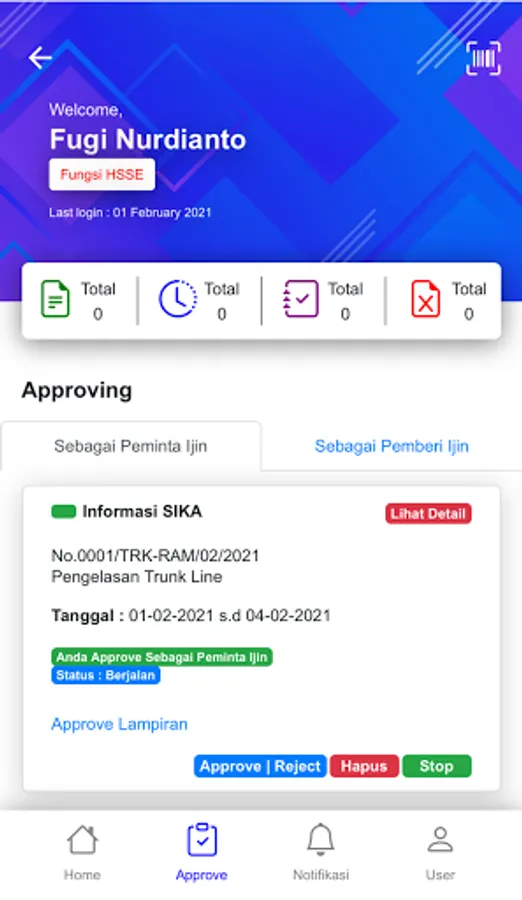 MyMission is an application that will serve as a forum for various activities that run on the HSSE function of PT. Pertamina EP Asset 5 Tarakan Field. In the future this application will contain various types of applications which are digital activities carried out at PT. Pertamina EP Asset 5 Tarakan Field, especially in the HSSE function. Currently this application contains the digitization of making SIKA (Safe Work Permit). This application will continue to be updated to provide applications for other activities in the HSSE function.