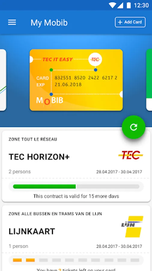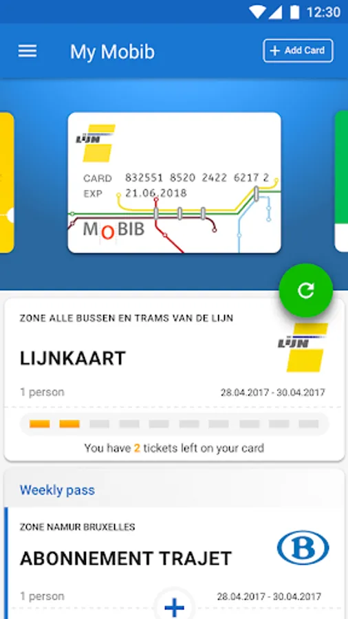This app allows you to read (by NFC scan) MoBIB tickets for all Belgian public transport operators SNCB, STIB, De Lijn and TEC. Check the presence, the validity of your subscription, the number of tickets and the remaining travel time. From now on the translation process of the card content is done via our (online) server, which speeds up the recognition of new products launched by transport operators.