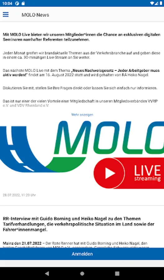 Here you will find important news about the transport industry and access to internal documents. You can also exchange information about current developments and network with other members. Always take the MOLO e.V. with you and get access to our network at any time.