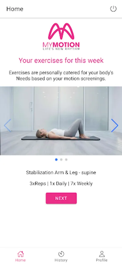 Motion specialists screen a client using the MyMotion Business App. Three targeted exercises are presented as a result of the screening process, processed by the revolutionary MyMotion "human code" and AI.