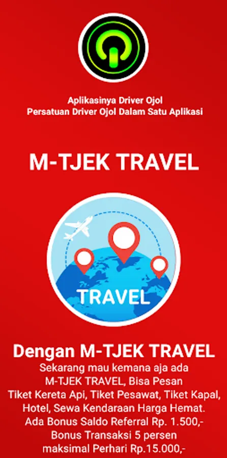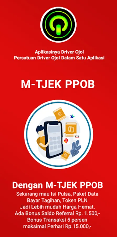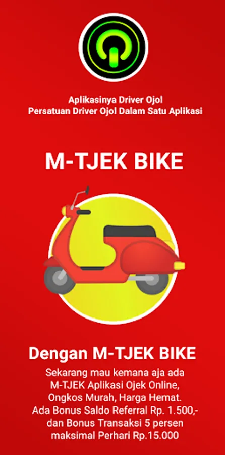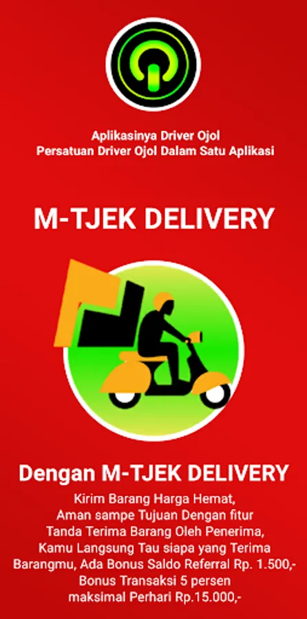 M-TJEK Bikers is an online motorcycle taxi application for anyone who works with M-TJEK to become a driver, connecting customers to order and deliver goods, as well as delivering passengers.