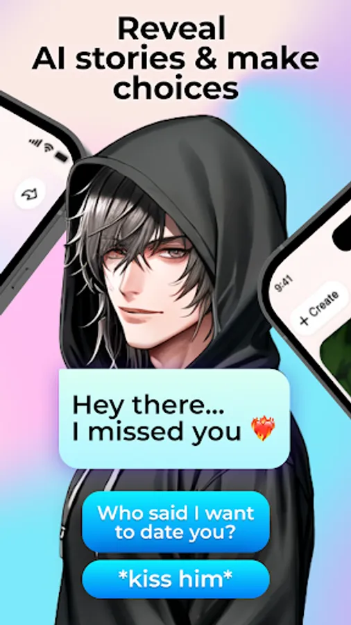 Swipe and choose AI characters by the description and photo on their cards. Have you made your choice? Start your extraordinary texting game experience. Will it be just an AI companion, or your AI girlfriend or boyfriend? Will it be an ambitious pureblood wizard or a famous K-POP idol? Click ""Chat"" to start a new conversation in the AI story game!