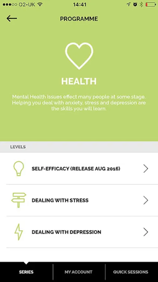 Options for you to continue your personal development after your free sessions on happiness & dealing with stress with a range health and performance topics
