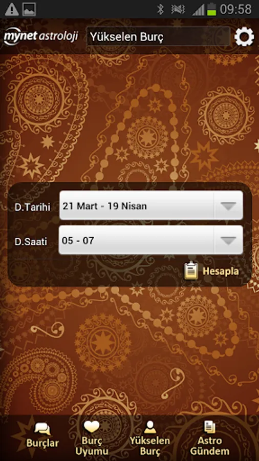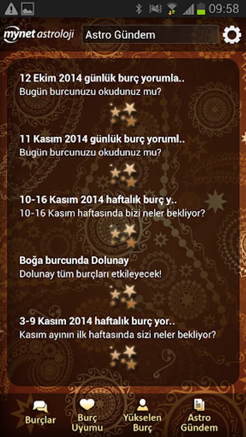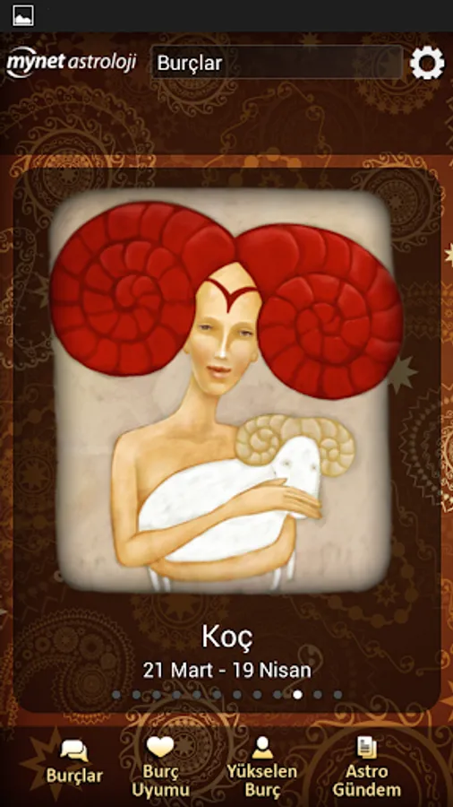 Mynet Astroloji uygulamasında kendi burcunuzu sağ üst köşedeki ayarlar bölümünden değiştirerek uygulama her açıldığında direkt olarak kendi burcunuzu okuyabilirsiniz.