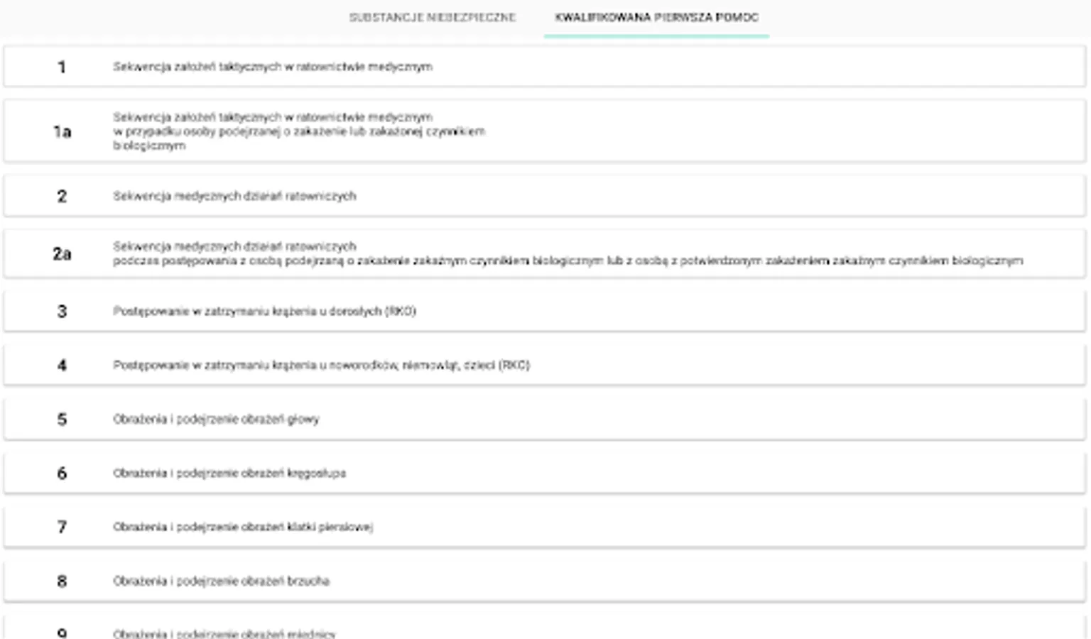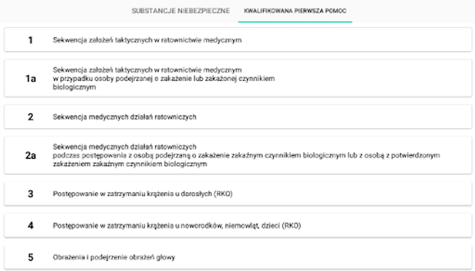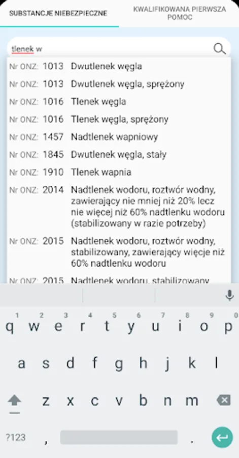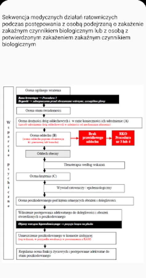 The application presents rescue procedures in the event of a dangerous situation related to hazardous substances. It also allows a substance to be identified by its UN number or name. The procedures for chemical and ecological rescue presented in this application are used for actions by KSRG rescuers in the first 30 minutes from the failure. The main document on the basis of which the procedures were developed is the "Principles of rescue procedure 2016" issued by the Chief Inspectorate of Environmental Protection. In addition, the application contains a list of current Qualified First Aid procedures in the form of diagrams.
