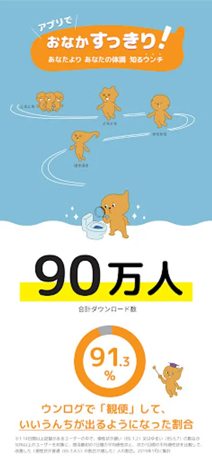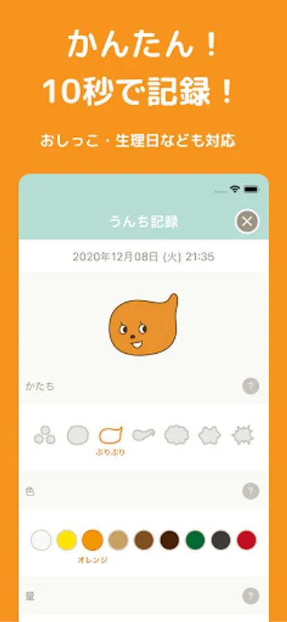 Score poop with a 10-second record! You can see the state of your intestinal environment. Let's aim for a beautiful intestine with high score poop! You can manage the calendar, so you can see at a glance whether you are communicating or not.
