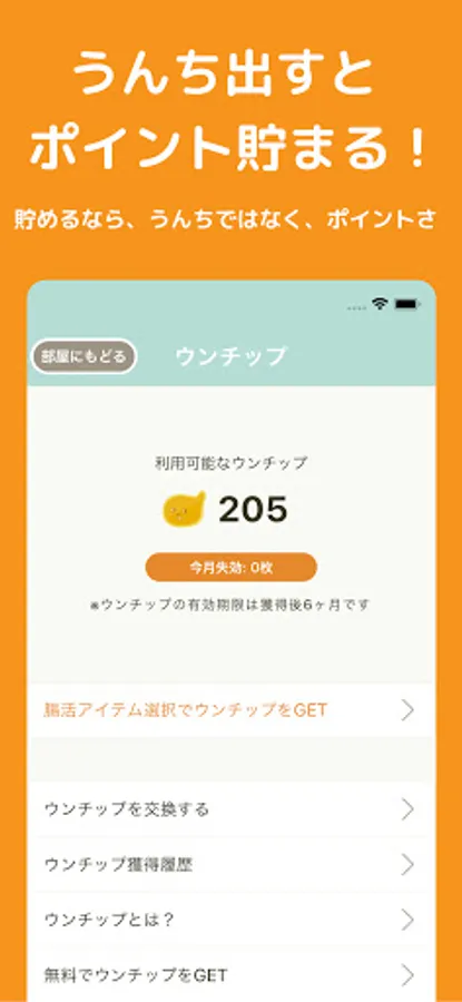 Reward for daily intestinal activity! You can collect points "unchips" in various ways, such as poop records, intestinal activity records, and irregular campaigns. Eliminate constipation and diarrhea and get health and points!
