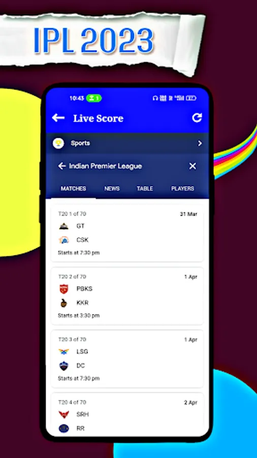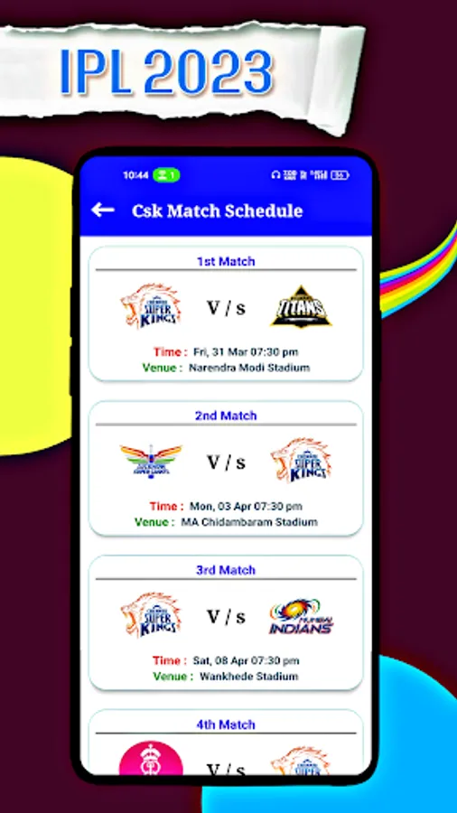 When you download our IPL Schedule 2023 App, you don't need to go anywhere else, this is one stop solution for every fan of Indian Premier League.