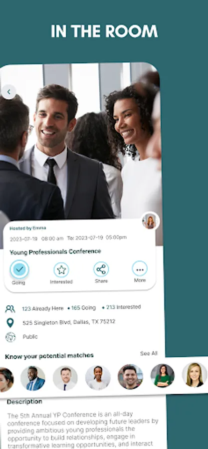Find and identify current and future get-togethers with your matches. RSVP, connect, chat and start learning more before about your connections before the in-person meeting.