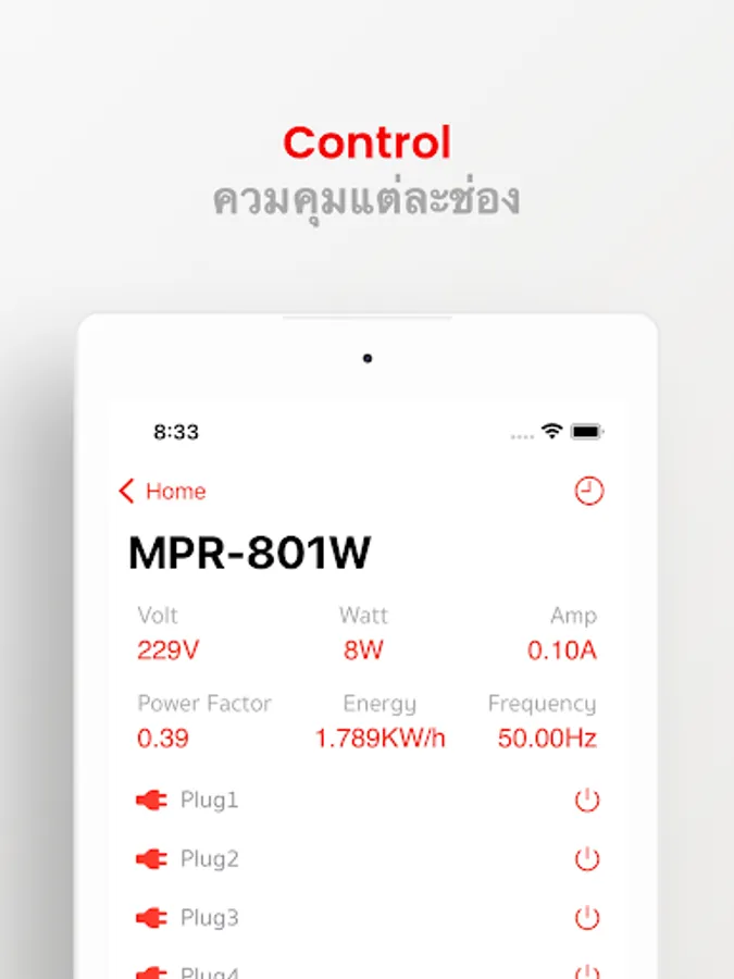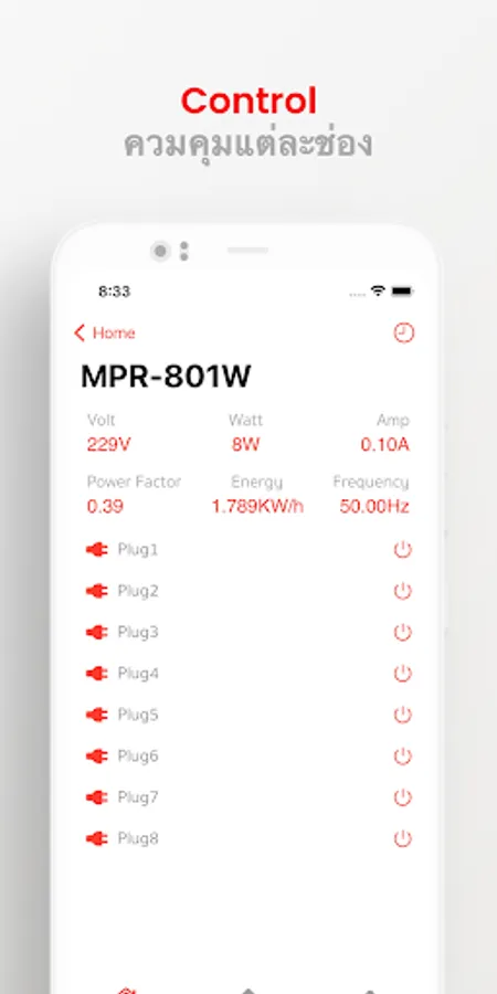 1. Control the on-off of electrical and audio equipment for 8 channels, use independently (via application) and ALL ON (press on the unit).