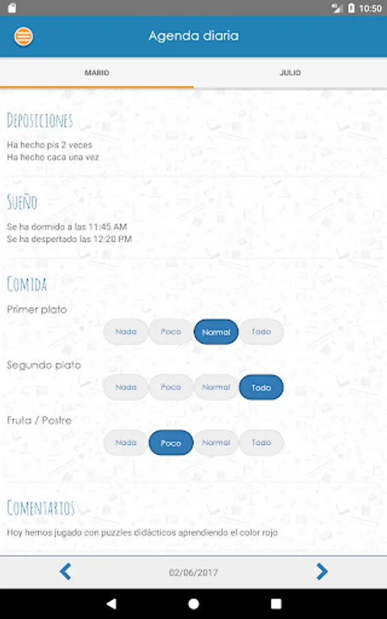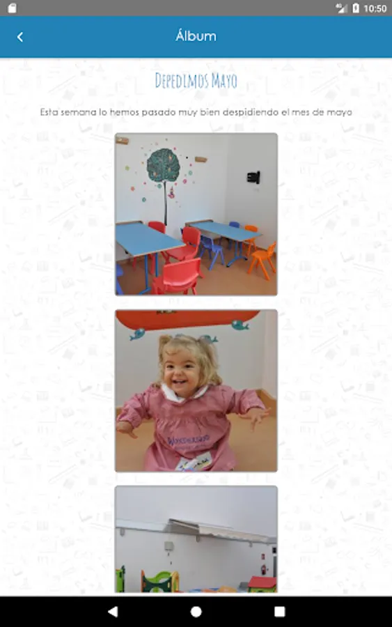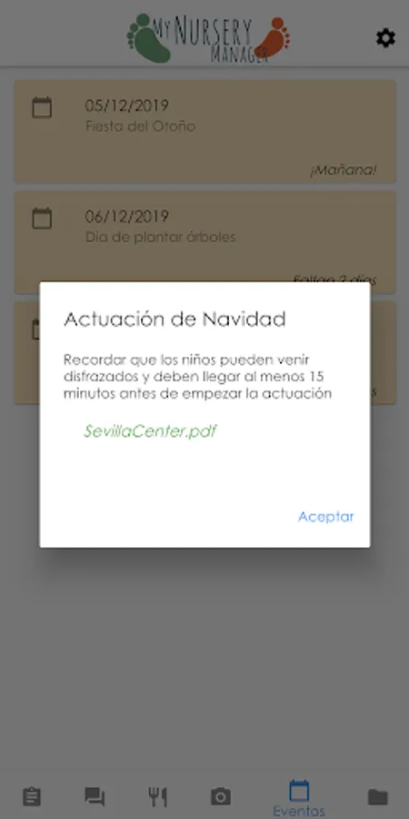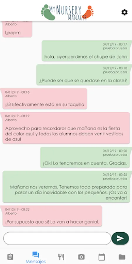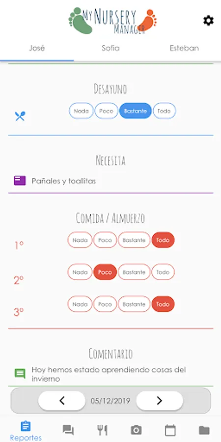 * Sending reports to families that can be notified via email. Reports can be daily, with the following optional sections: Breakfast, siestas, depositions, lunch, snack, comment, need.