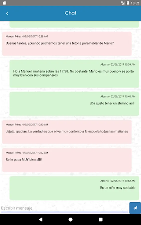 * Chat father-center. Parents can send messages to the center and the center answer them in a chat-style view.
