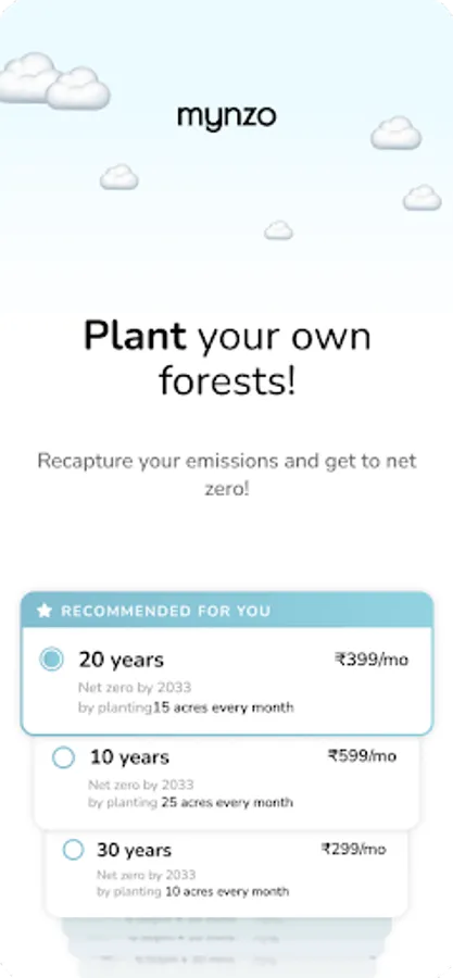 Introducing Mynzo (MY Net ZerO), the revolutionary application that is transforming the fight against climate change. Our mission is to help corporations and individuals reduce your carbon footprint and achieve a net-zero emissions lifestyle. Mynzo AUTOMATICALLY measures emissions to create your 'climate-identity’ and suggests ideas to reduce those emissions. Finally, with Mynzo, you can plant your very own Forest to recapture whatever’s left and get to Net Zero. Become a Net Zero Hero with Mynzo!