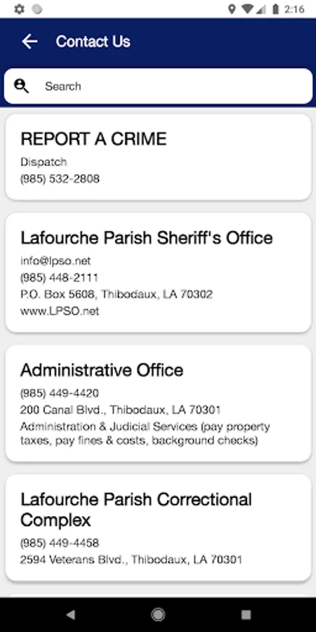The Lafourche Parish Sheriff’s Office mobile application is an interactive app developed to help improve communication with area residents. The Lafourche Parish Sheriff App allows residents to connect with the Lafourche Parish Sheriff’s Office by reporting crimes, submitting tips, and other interactive features, as well as providing the community the latest public safety news and information.