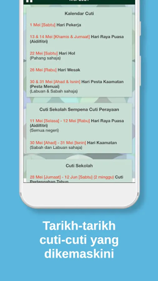 • Kalendar cuti umum, cuti negeri dan cuti sekolah
