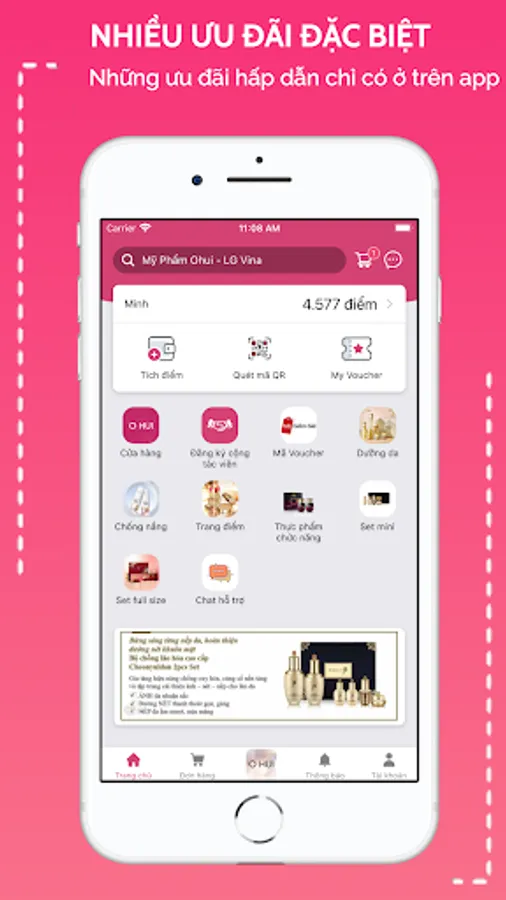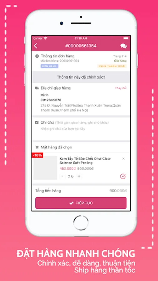 The application is designed conveniently, support you directly via chat, call, help you choose products, order and pay easily.
