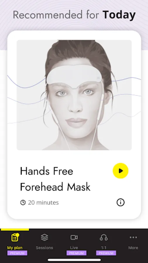 This is a 10minute hands-free Forehead Mask treatment. It delivers Stretch waveform for 5mins and Lift waveform for last 5mins. This treatment will help work on the Forehead muscles to relax and lift them.