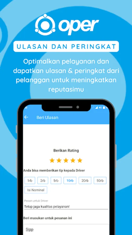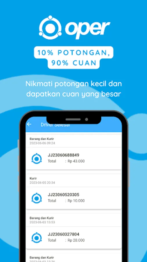 We are very concerned about the welfare of our driver partners. Oper only charges 10% for app maintenance, while 90% of the revenue goes directly to your pocket. Our goal is to provide maximum benefits to drivers. With Oper, not only do you benefit financially, but customers are also happy because they get cheaper prices compared to other applications.