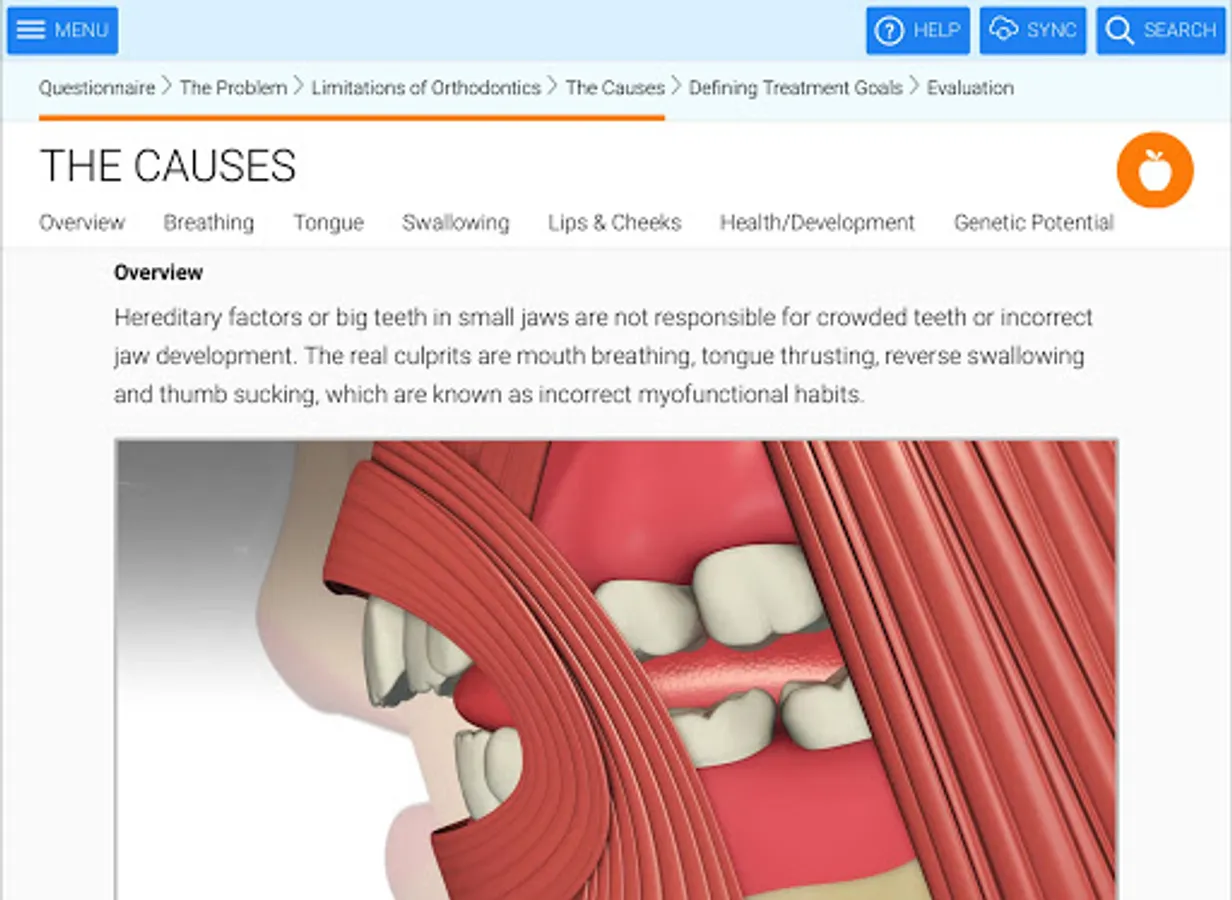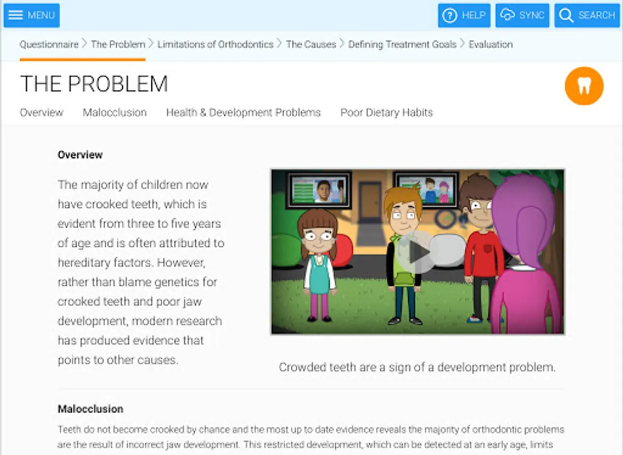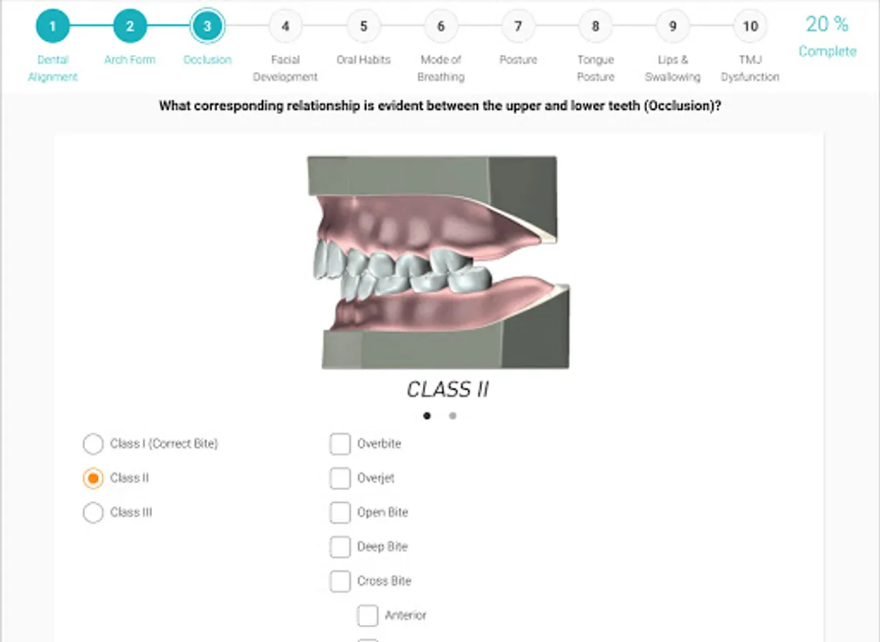 The Myobrace® Consultation app allows practitioners and staff to assess a patient's myofunctional habits, while delivering information to both parent and patient, regarding the dental health concerns affecting the child’s growth & development.