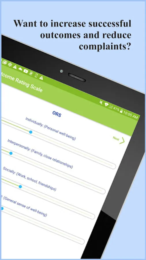 MyOutcomes makes the collection of Outcomes and Session Ratings as simple as asking the questions in conversation. It even has an offline mode that works when there is no cell or Wi-Fi service available.