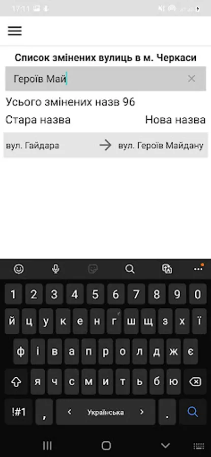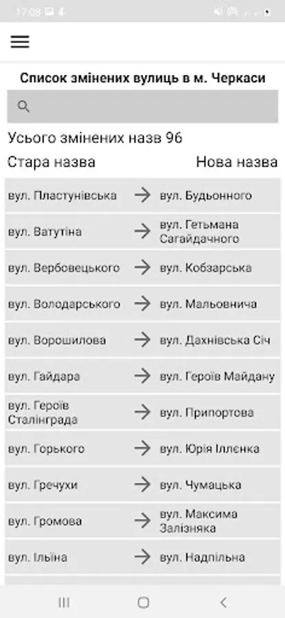 A convenient application for viewing and searching for changed street names in every city of Ukraine!