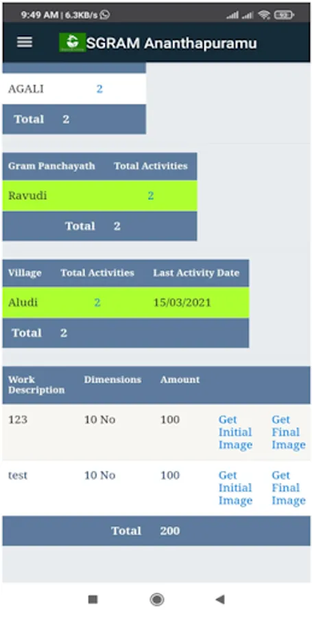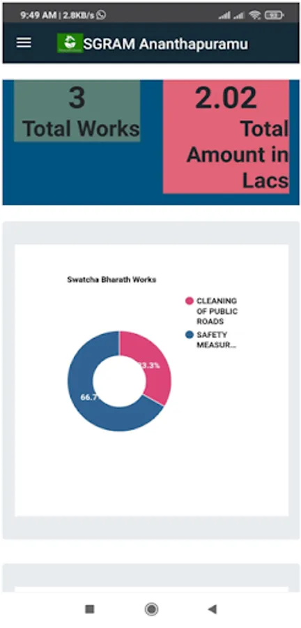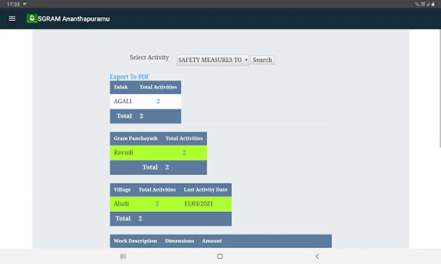 It is an G2G App to effectively monitor the Swachh Gram Activities carried at Gram Panchayats on daily basis with the help of Mobile App with role based access to Mandal Parishad Development Officer (MPDO) at Mandal level & the Chief Executive Officer(CEO) at Zilla Parishad.