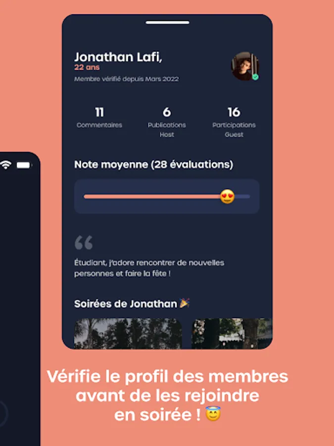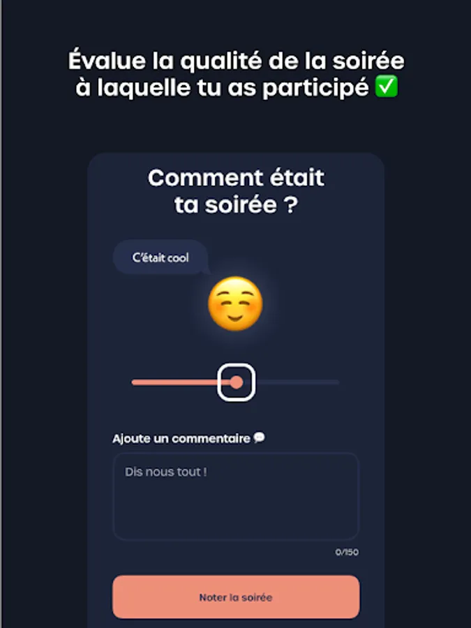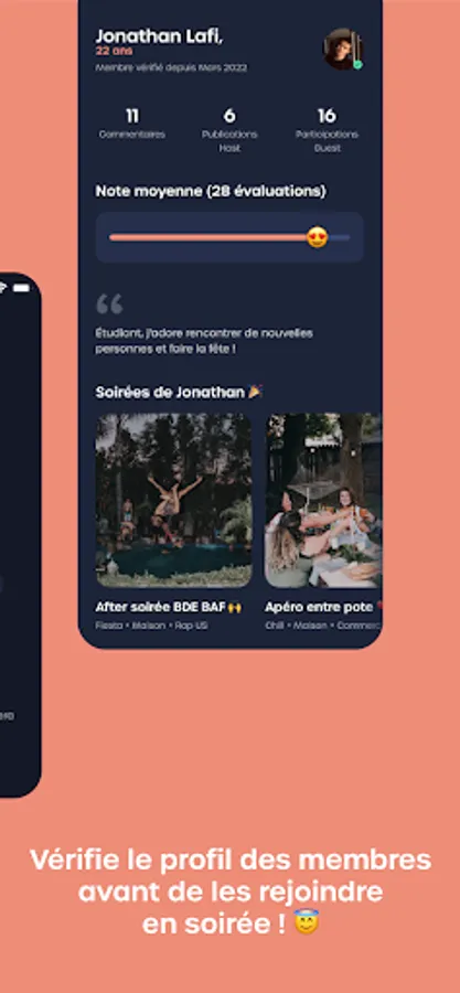 After each evening, thanks to a rating system, members can rate themselves and post comments on the quality of the evening in order to create a community of trust.