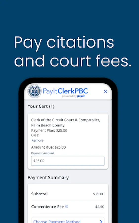 Quickly and securely search for and pay your citations. Get reminders for upcoming due dates and keep track of all your receipts with PayitClerkPBC.