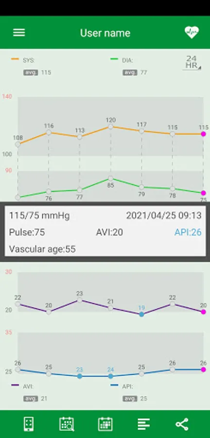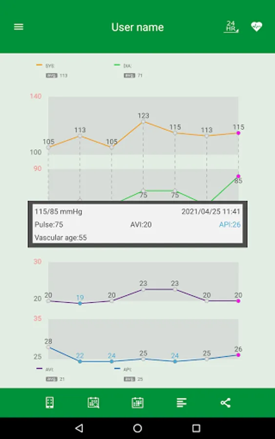 Use charts to visually display the user's AVI and API, high and low blood pressure, pulse record data change trend, and support finger scaling and sliding convenience operation.Support multiple forms of record data to quick lookup.