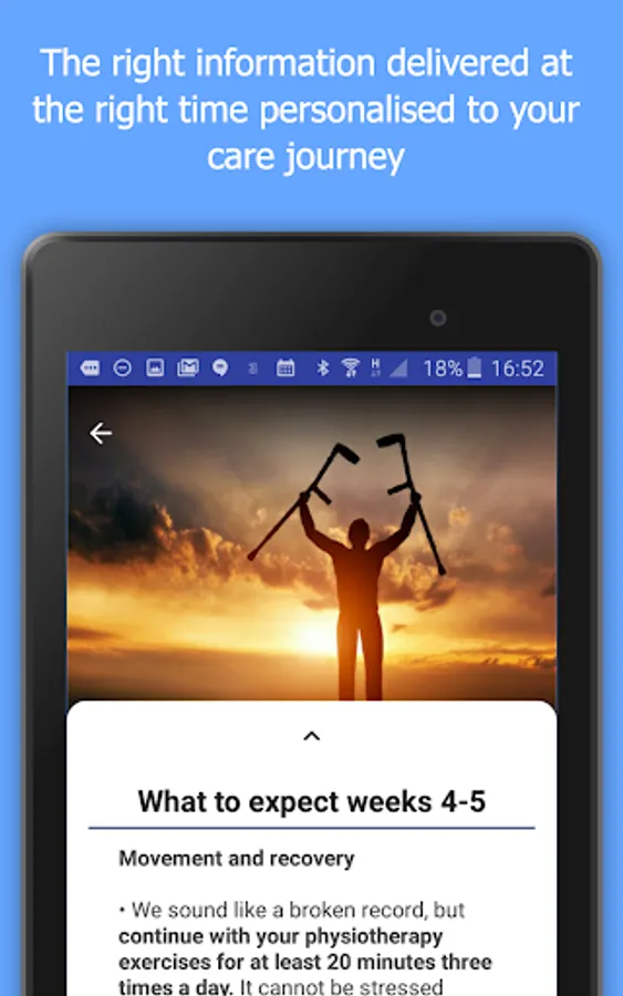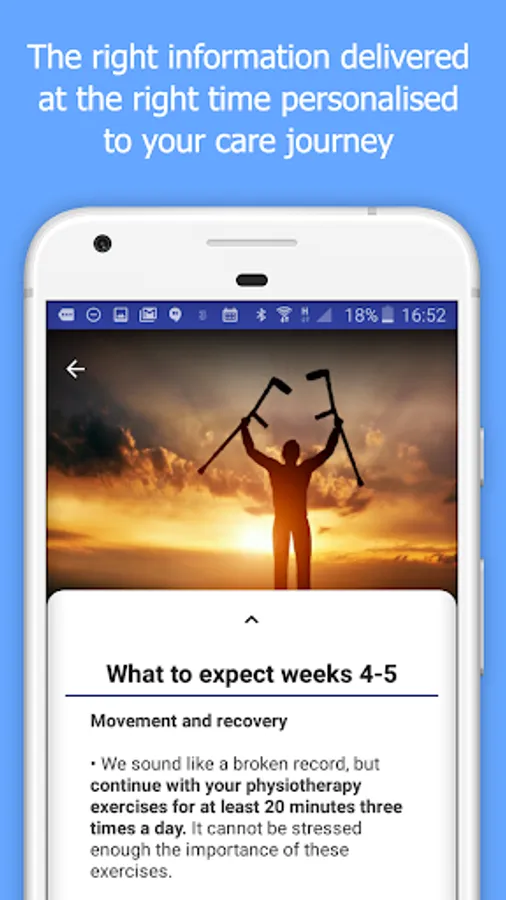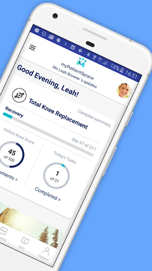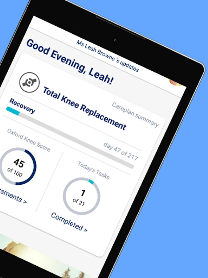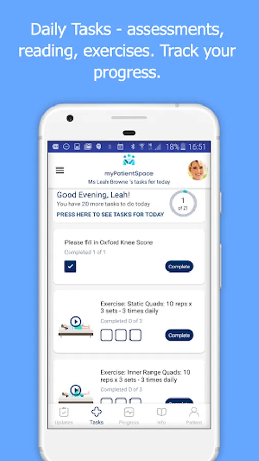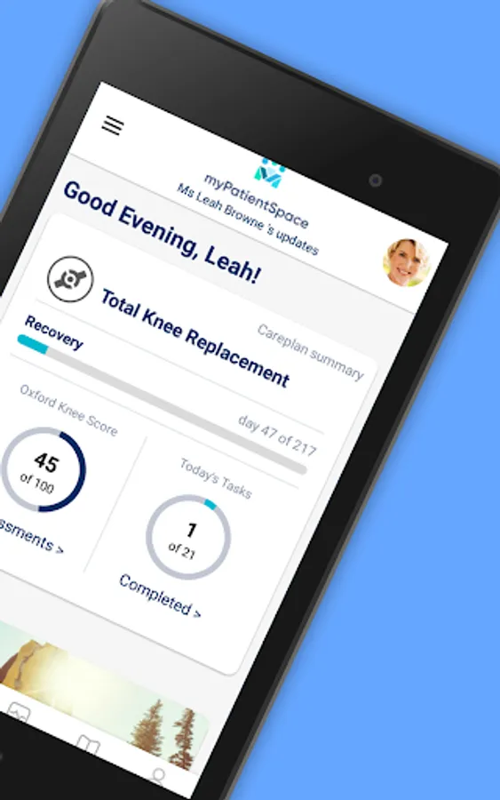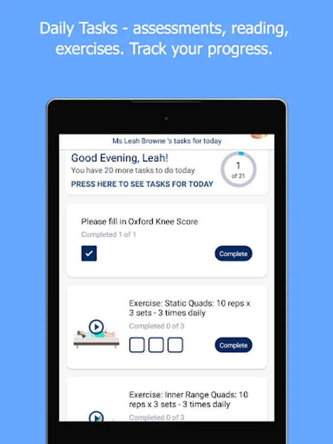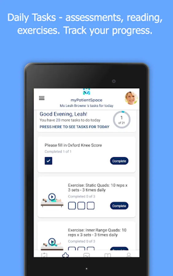 Patients can use the app to get updates, education, complete assessments, daily tasks, and track progress.