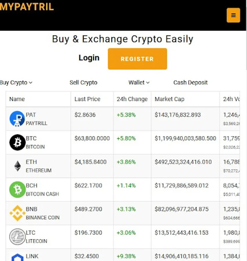 Mypaytril is a cryptocurrency exchanger that allows users to trade, buy, sell, swap, convert any crypto asset of their choice with ease.