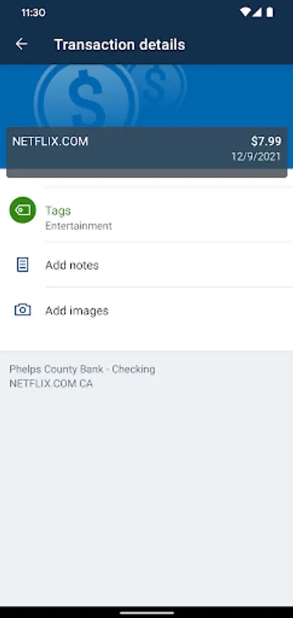 * Keep your transactions organized by allowing you to add tags, notes and photos of receipts and checks.