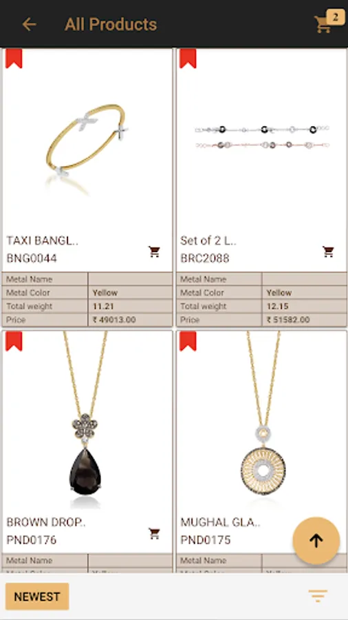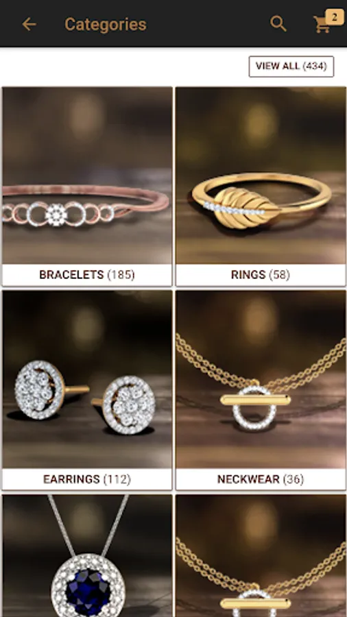 - Filter based on category, price, purity, metal color, type, and relevance.