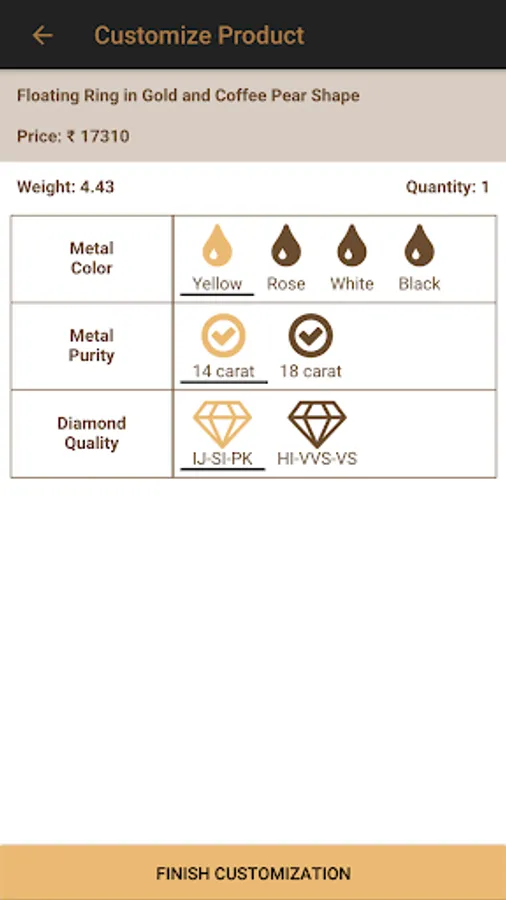- Customize your selection based on metal color, purity and diamond quality.