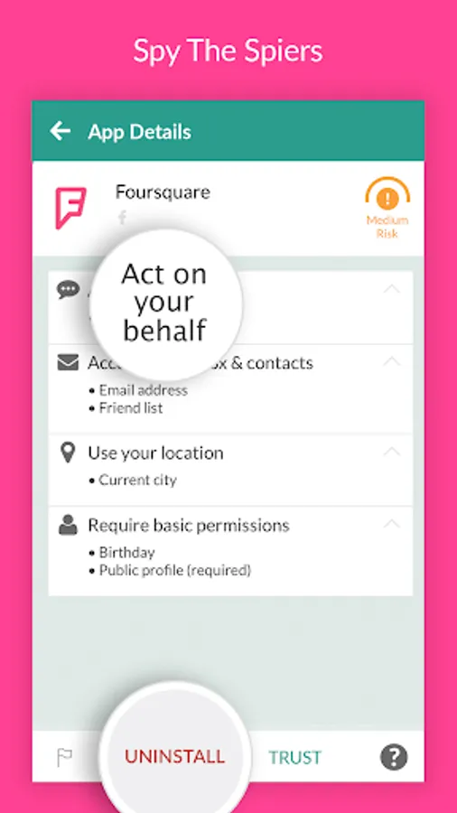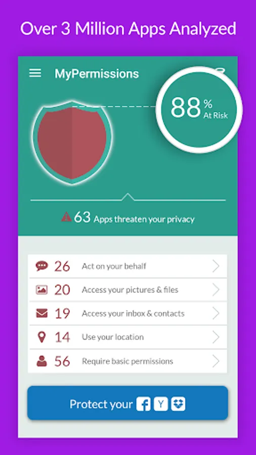 ✔ Connect Facebook, Instagram, Twitter, Google+, Dropbox, and Yahoo to see detailed app permissions