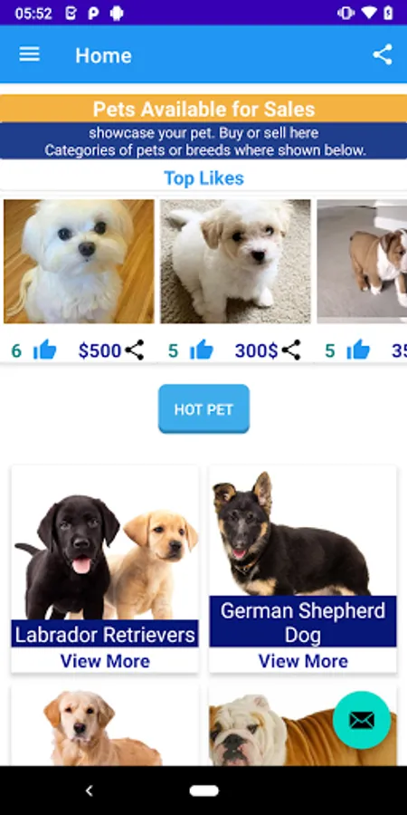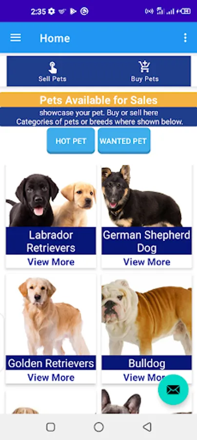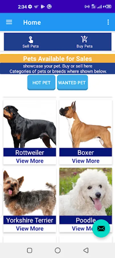 You can make your pet available by showing them on the app for sales or if you need any one. The following dog breeds can be found like Boxer, poodle, bulldog, Labrador and golden retrievers, German Shepard, Beagle, Rottweiler, Yorkshire terrier and any other domestic animals of different types.