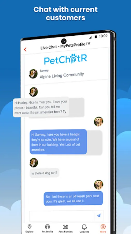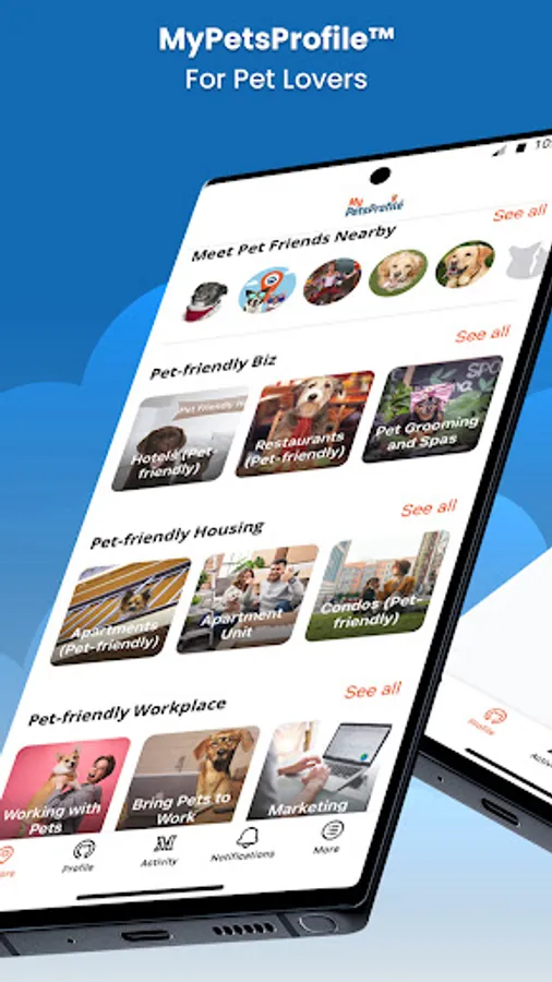 Search, connect and organize play dates, or chat privately one-one or in a group. Meet pet parents with similar interests and breeds. Source, refer and rate neighborhood pet-friendly venues, events, products and services in your community.