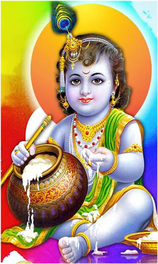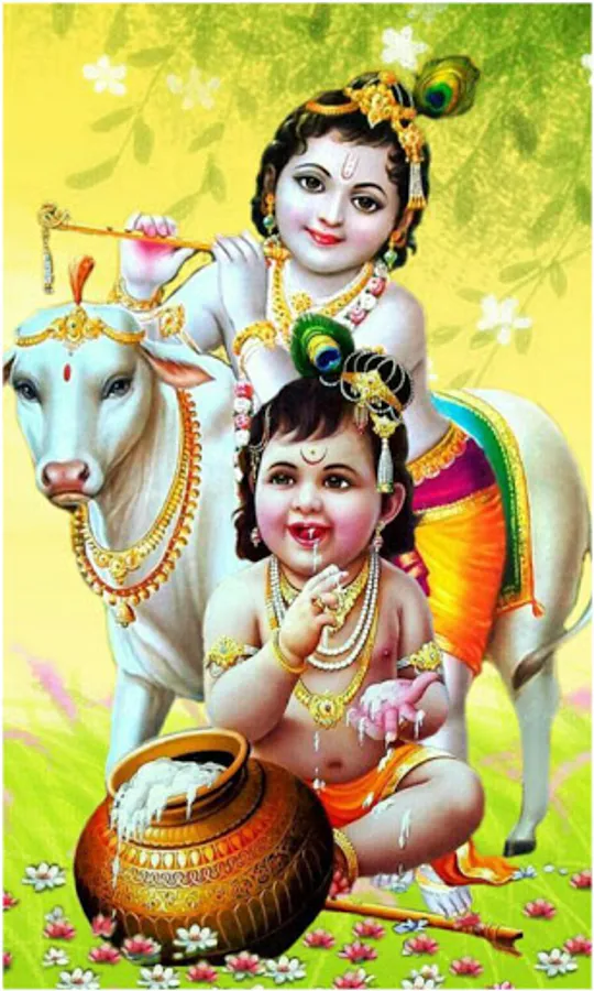 This Bala Krishna app has beautiful wallpaper with colorful flowers and twinkling stars.