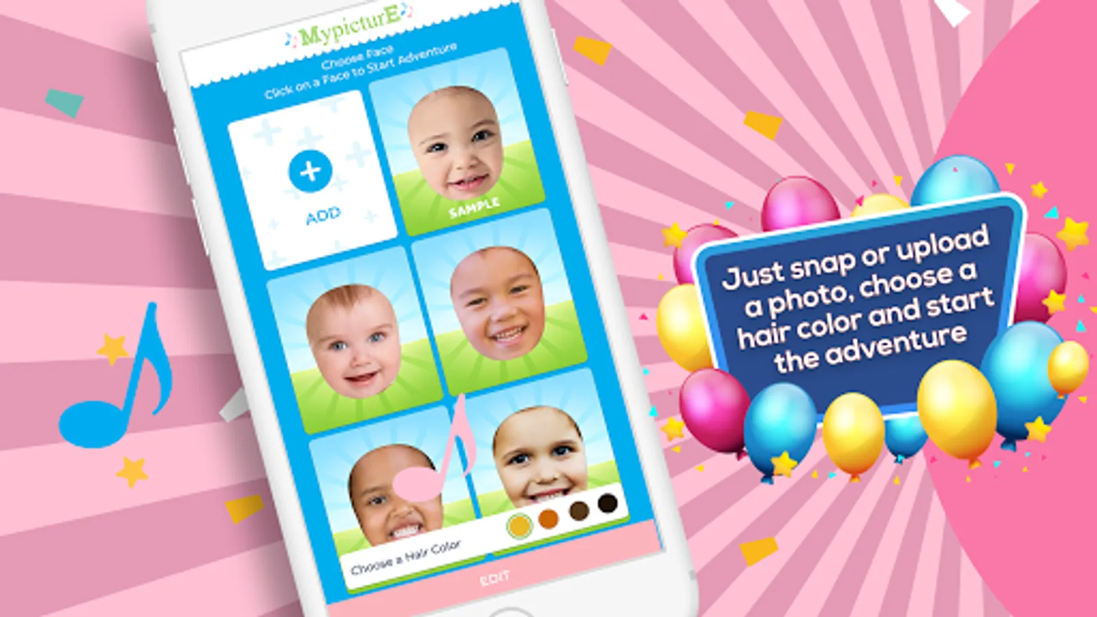 MypicturE Nursery Rhymes Vol1 app enhances toddlers' learning by placing them at the center of nursery rhymes songs. It is an interactive app that enables you to personalize top kids songs by adding your child's face to nursery rhymes videos. Snap or upload a photo, fill the outline with your child's face and choose a hair color for your child to become a STAR of a nursery rhyme collection. Imagine your child's excitement and surprise when being featured in a nursery rhyme song video.