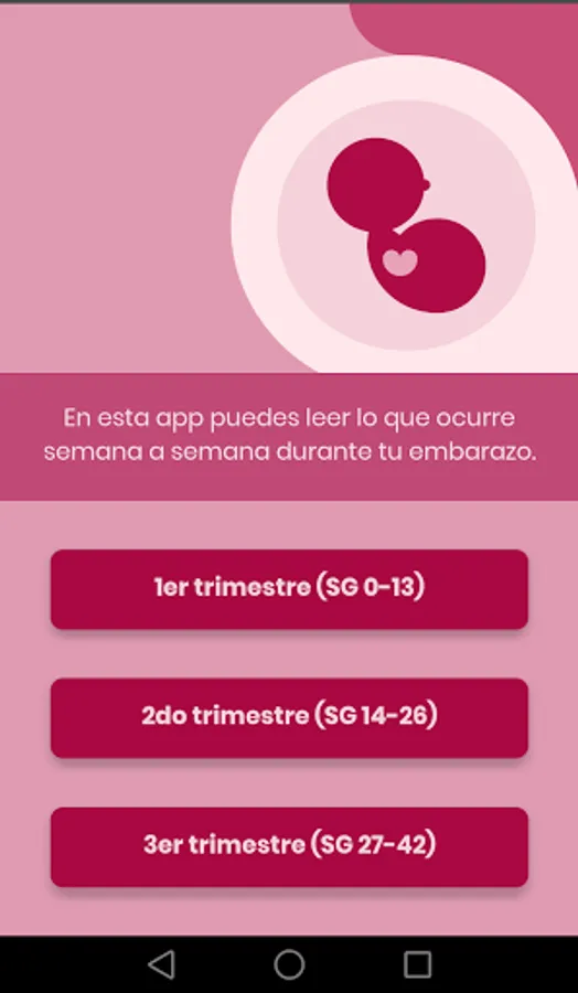 In this pregnancy app, you can follow your pregnancy week by week and read short descriptions about what is happening to you and your baby. This will help you quickly get an overview of what is going on at each point in your pregnancy, and hopefully help you stay more calm. The application is divided into first, second and third trimesters, so you can quickly locate the moment of pregnancy you are in.